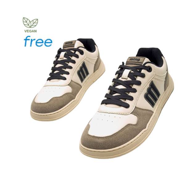 Zapatilla de color beige para hombre de la marca Mustang, modelo Free Miami. Este diseño combina una base lisa de color beige con paneles texturizados grises y cordones negros. El logo lateral y el talón resaltan en color negro. Diseñadas y desarrolladas especialmente en colaboración con el Dr. Juanjo López, traumatólogo deportivo, para respetar el desarrollo natural del pie.