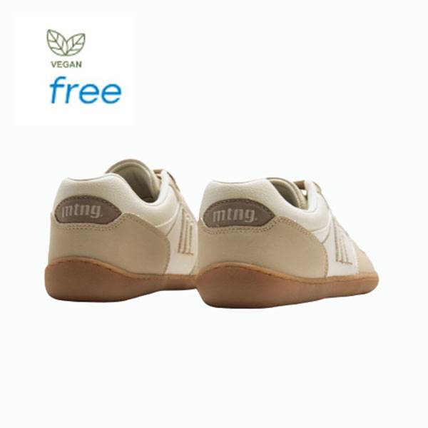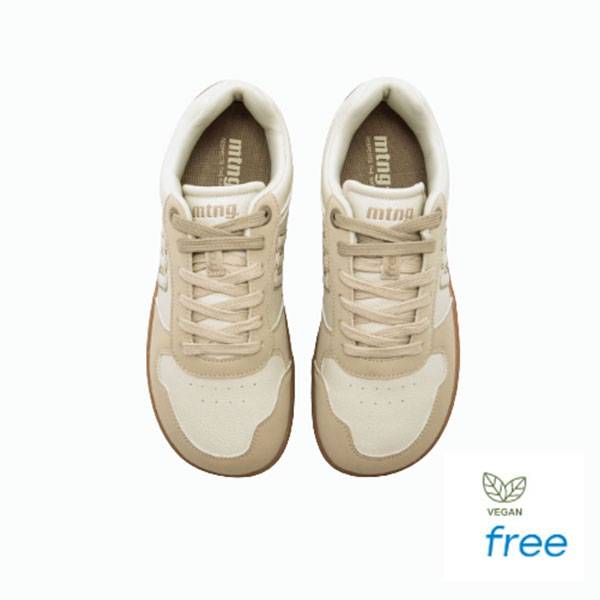 Zapatilla de color blanco y beige para mujer, marca Mustang. Su diseño deportivo con líneas suaves y la combinación de colores tierra y pastel aporta un look relajado y actual.