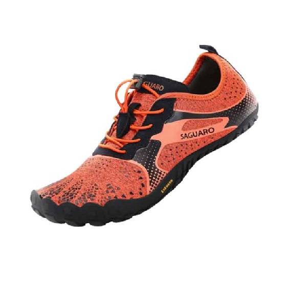 Patrón de suela único con suela de goma, ofreciendo protección para los dedos y agarre en el arco para una experiencia descalzo que también protege tus pies, duradero y cómodo.