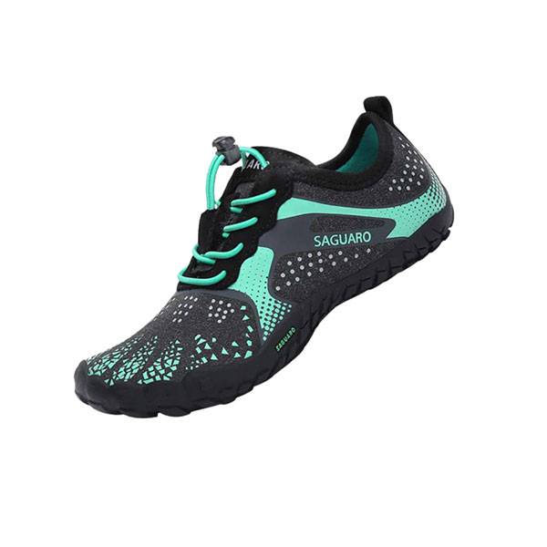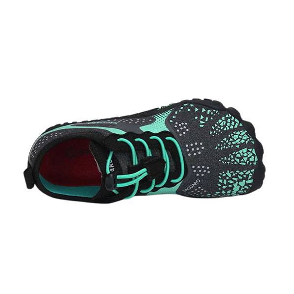 Patrón de suela único con suela de goma, ofreciendo protección para los dedos y agarre en el arco para una experiencia descalzo que también protege tus pies, duradero y cómodo.