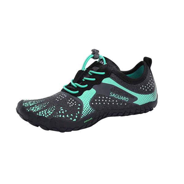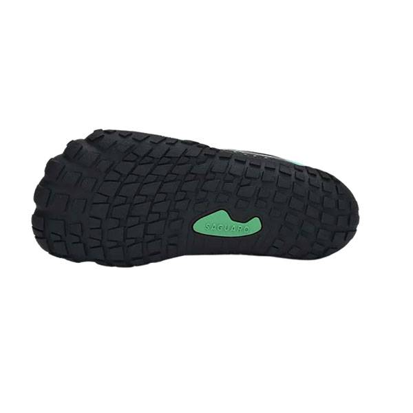 Patrón de suela único con suela de goma, ofreciendo protección para los dedos y agarre en el arco para una experiencia descalzo que también protege tus pies, duradero y cómodo.