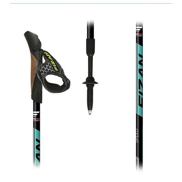 Bastones Nordic Walking Fizan Speed de longitud variable entre 85 y 125 cm. De aluminio súper liviano, peso 185 gr.