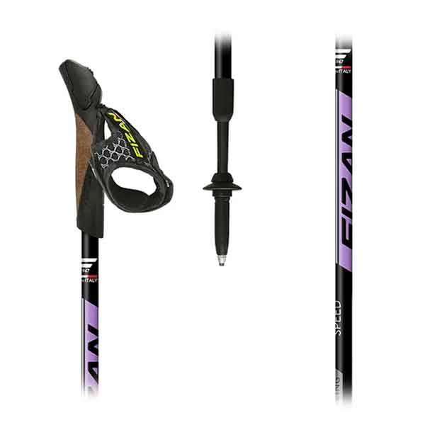 Bastones Nordic Walking Fizan Speed de longitud variable entre 85 y 125 cm. De aluminio súper liviano, peso 185 gr.