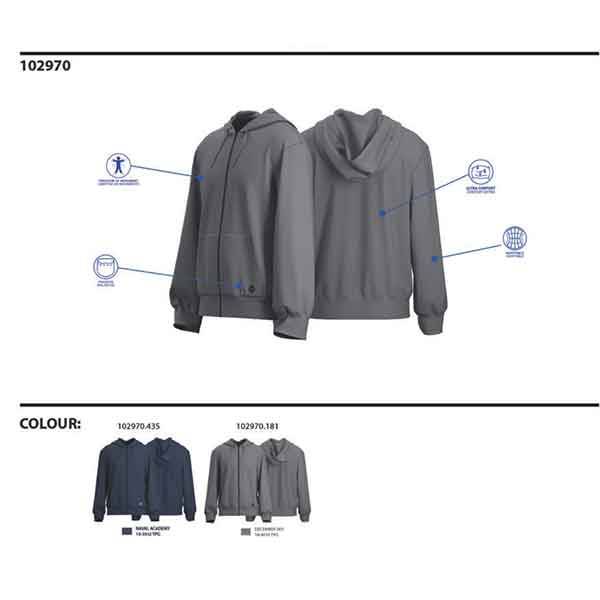 Sudadera de training. Todo un básico en el armario de cualquier deportista para antes y después de deportes como senderismo, marcha nórdica u otra actividad deportiva. Esta sudadera con cremallera de hombre está confeccionada principalmente en fibras de rayón, un tejido en tendencia dentro del mundo deportivo, muy cómodo, suave y transpirable. También podrás usarla en otros deportes o para vestir un look deportivo en tu día a día.