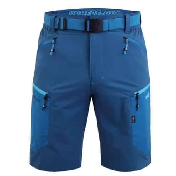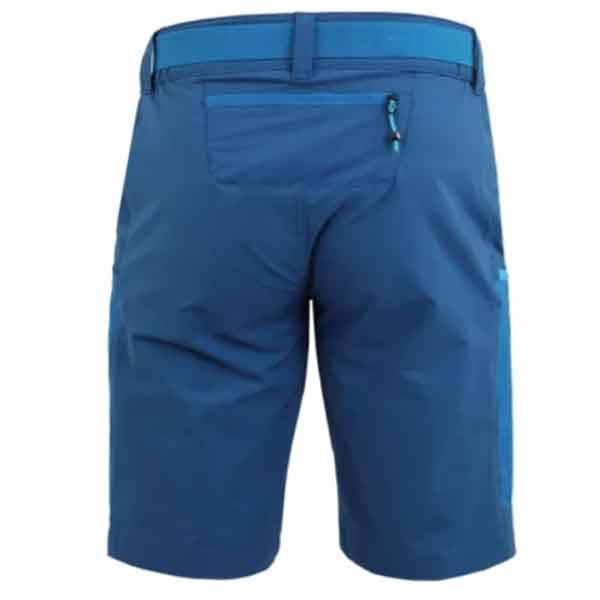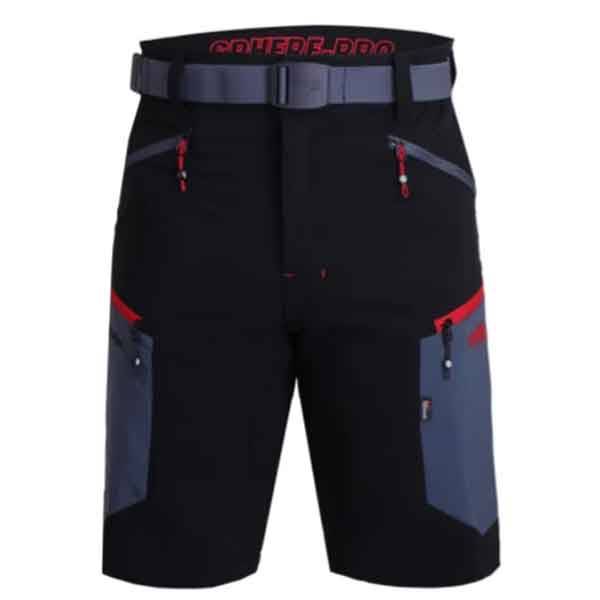 Cintura semi-elástica con cierre de botón corchete, cinturón elástico ajustable, cinco bolsillos con cremalleras invertidas a contraste, pieza de refuerzo en la entrepierna, logo bordado.