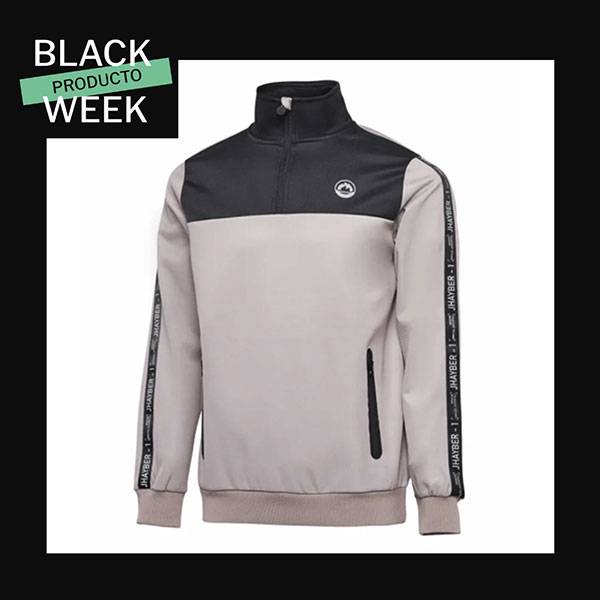 Sudadera para hombre en color gris con el pecho y cuello en negro y detalles en las mangas, es ligera y resistente.