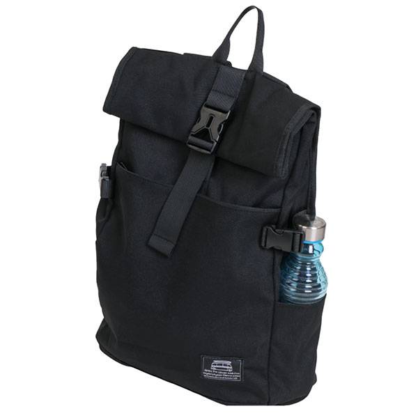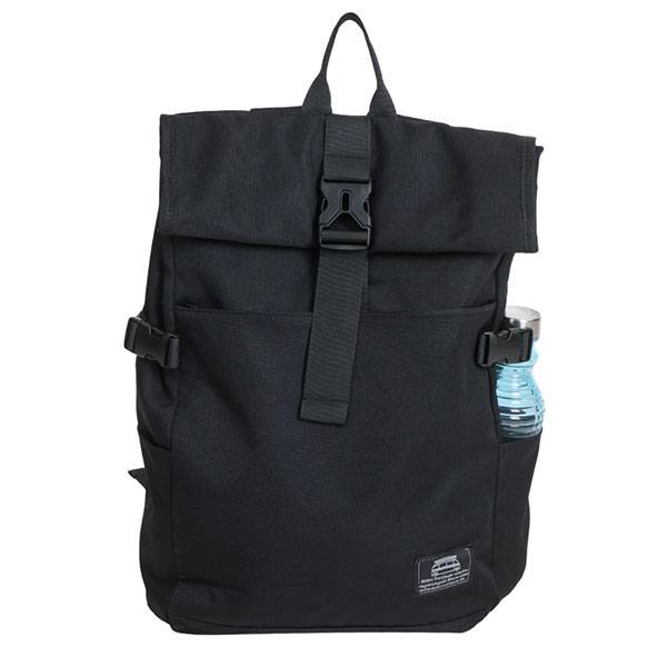 Su diseño enrolalble permite ajustar su capacidad de carga( cierre con velcro y broche de plástico), cremallera lateral