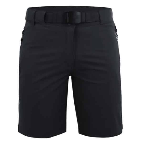 Cintura normal con cierre de botón corchete, cinturón elástico ajustable, dos bolsillos delanteros con cremalleras invertidas a contraste de color y una trasera con cremallera invisible, logos engomados.